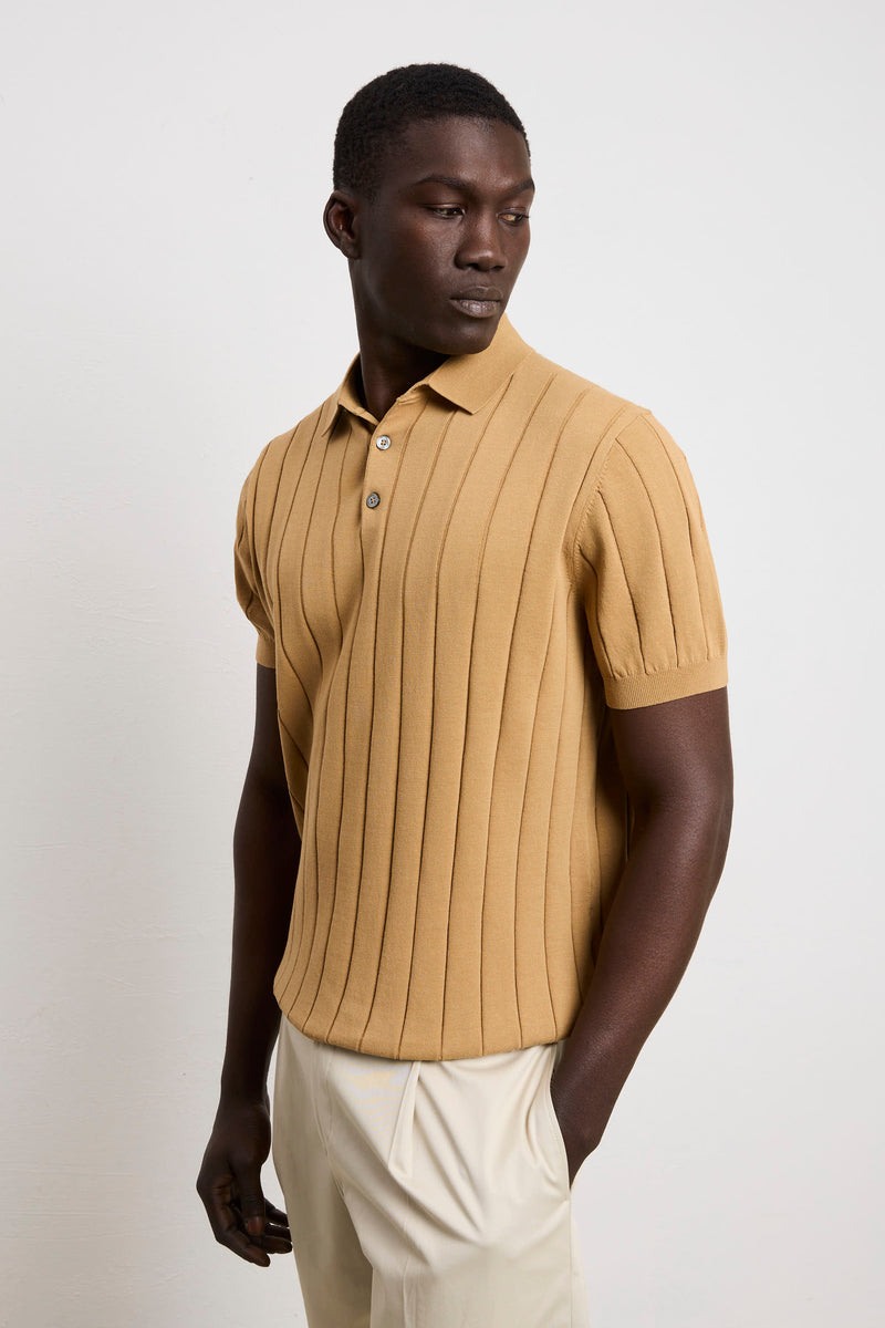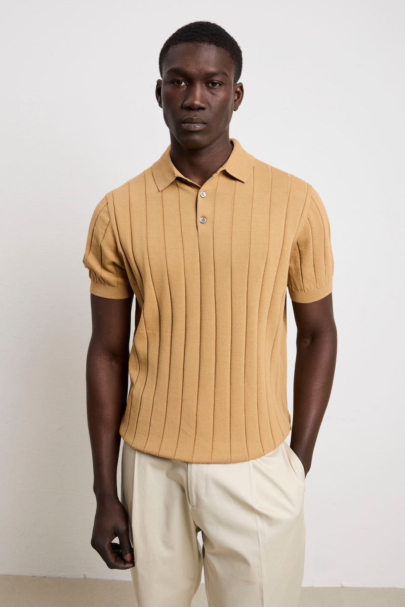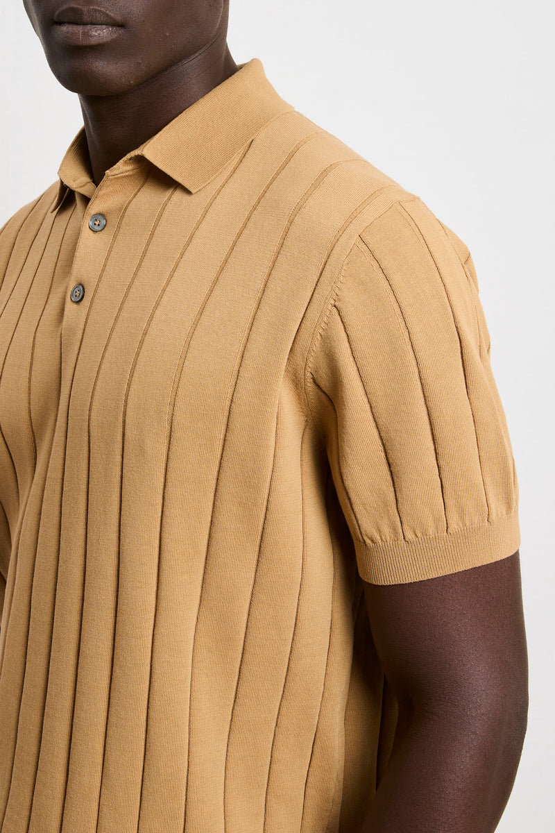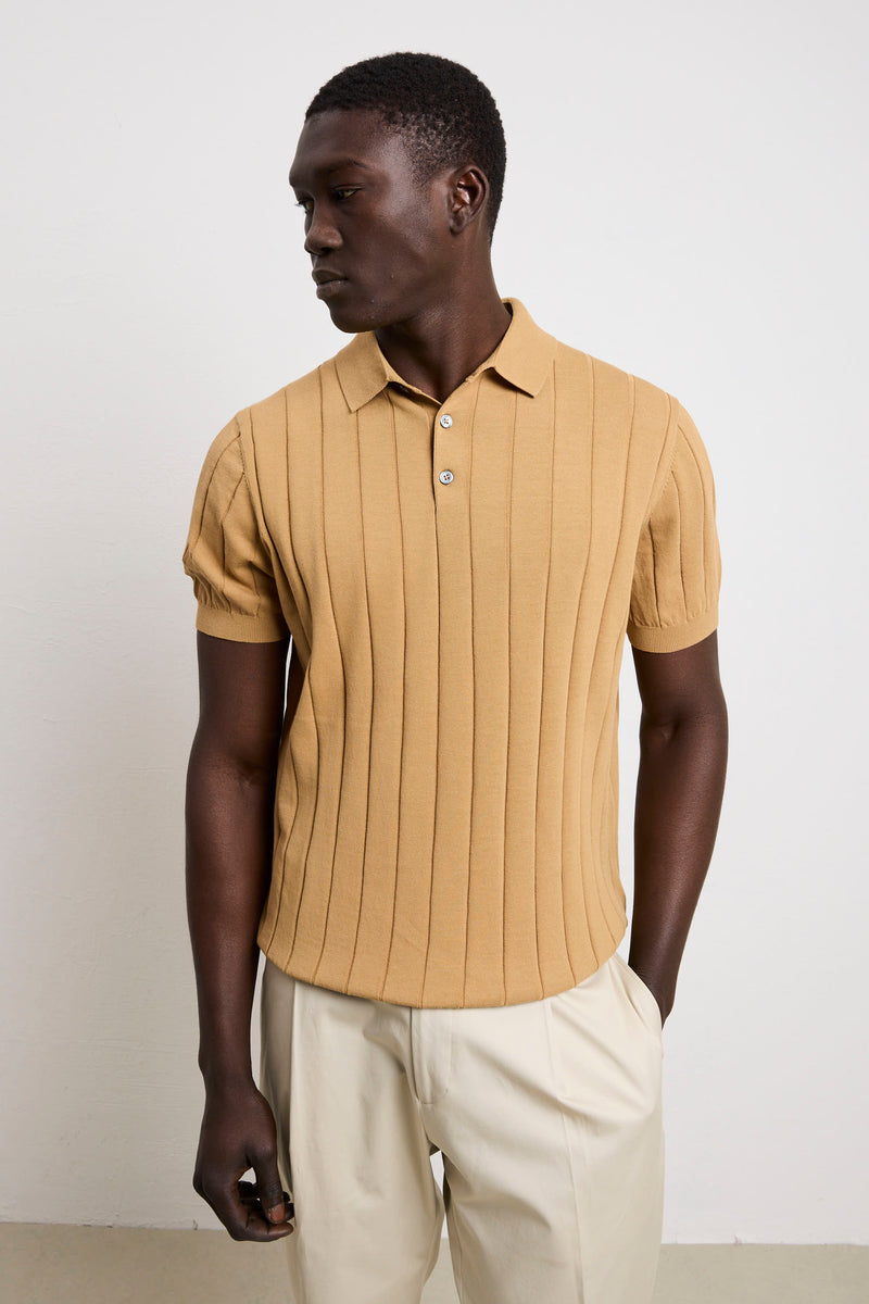 Reworked 3452 Polo a coste larghe in maglina a manica corta ocra