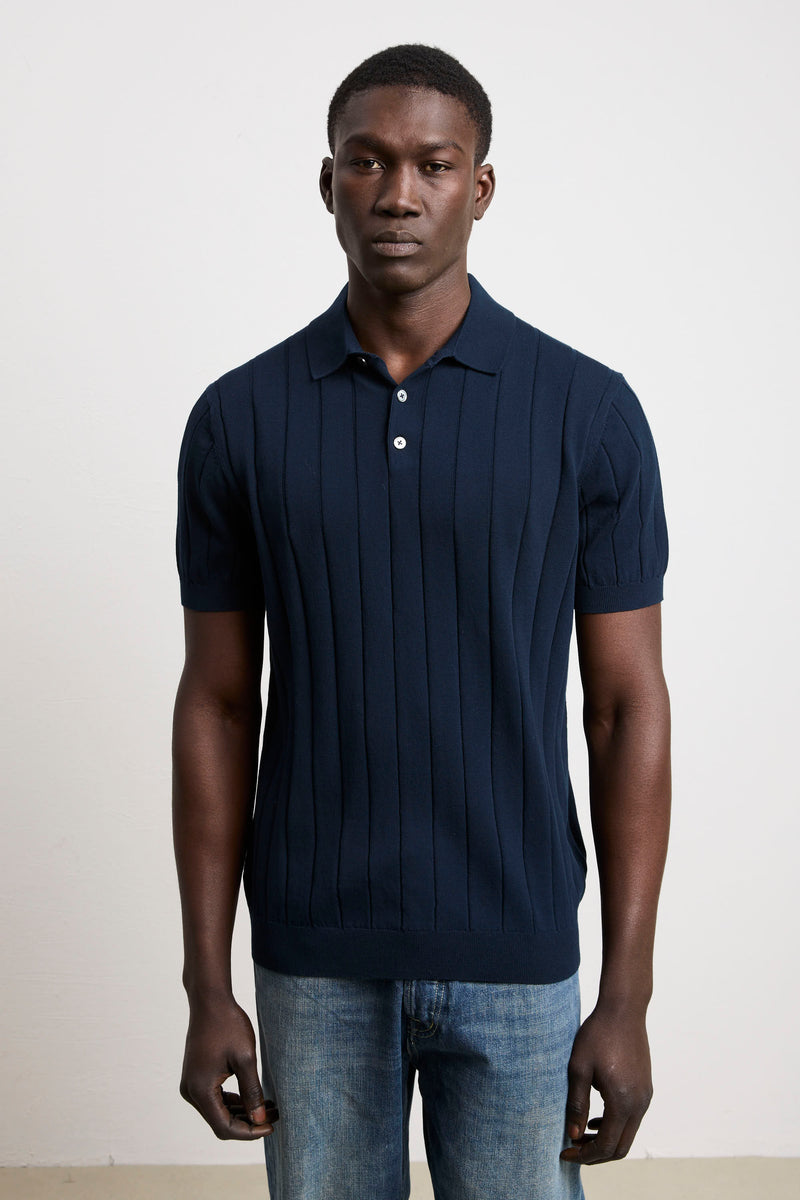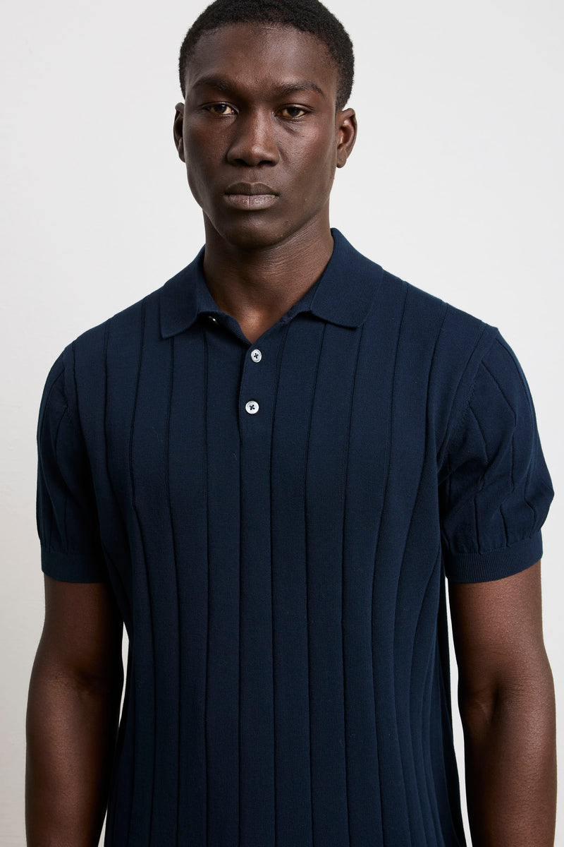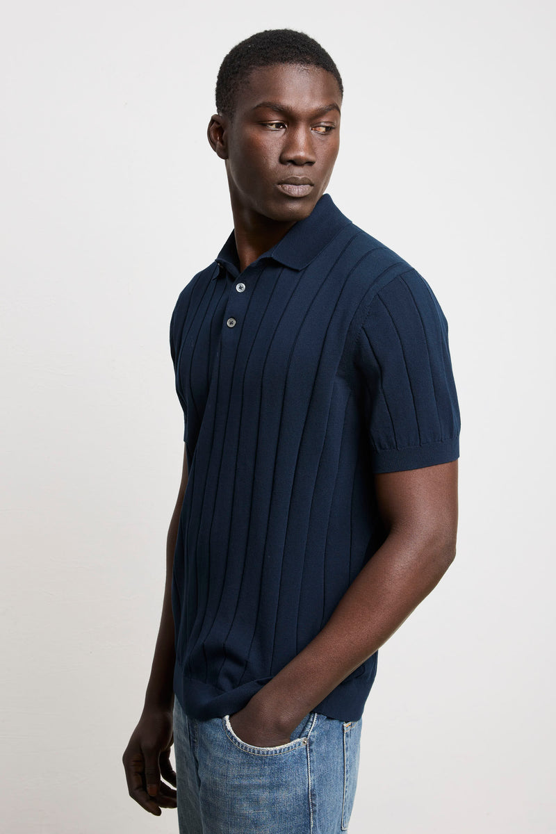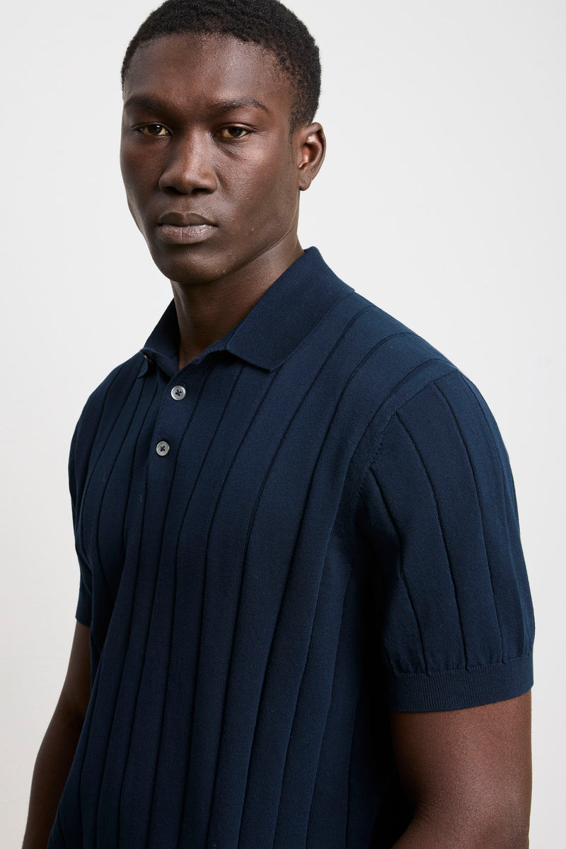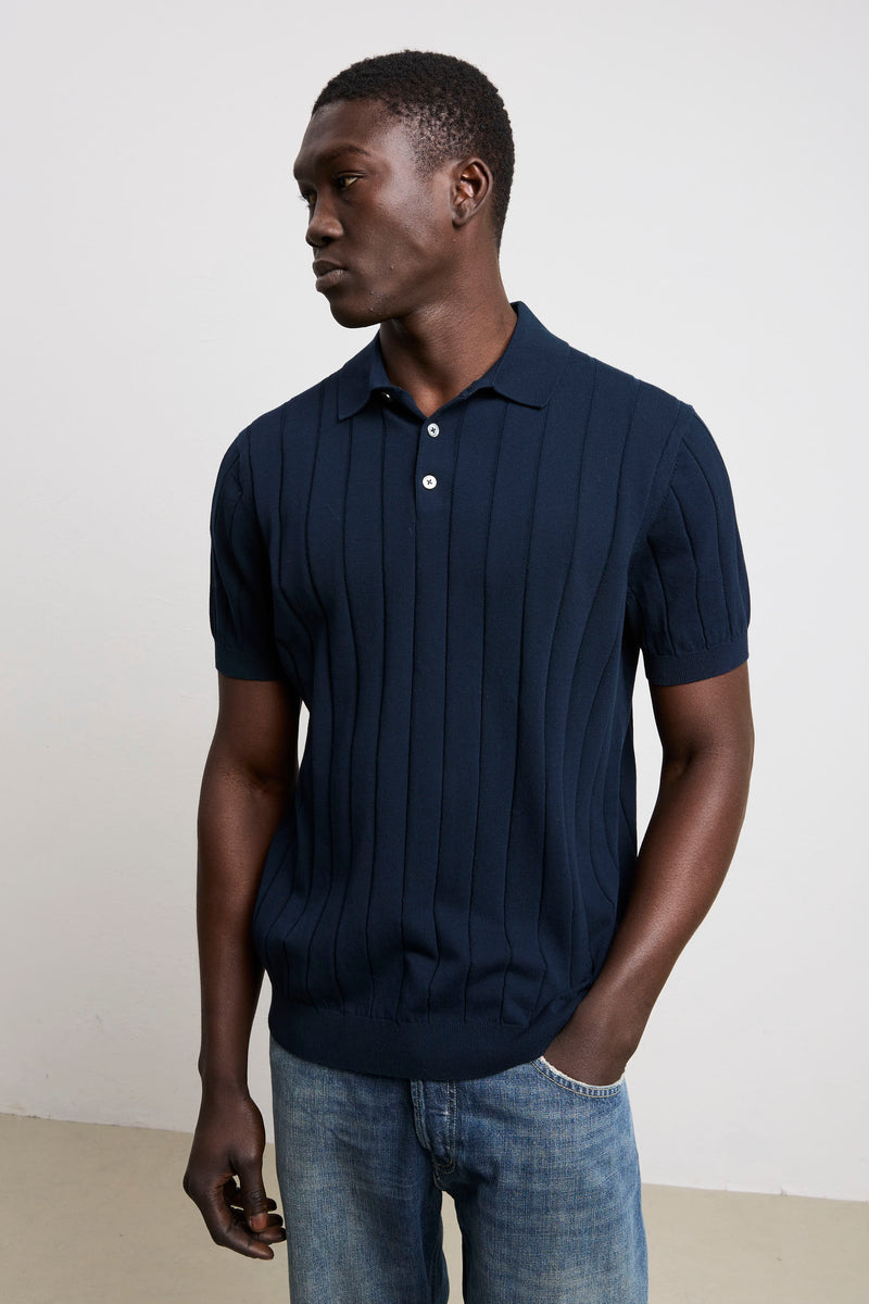 Reworked 3449 Short-sleeved wide-rib polo shirt in blue jersey