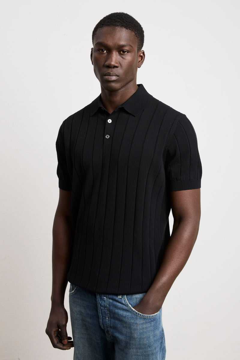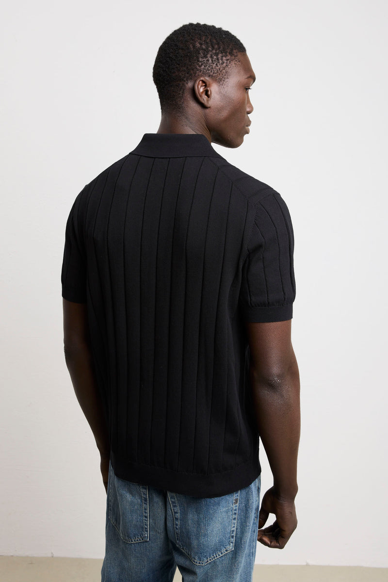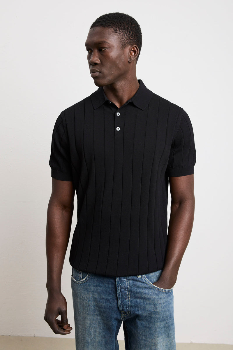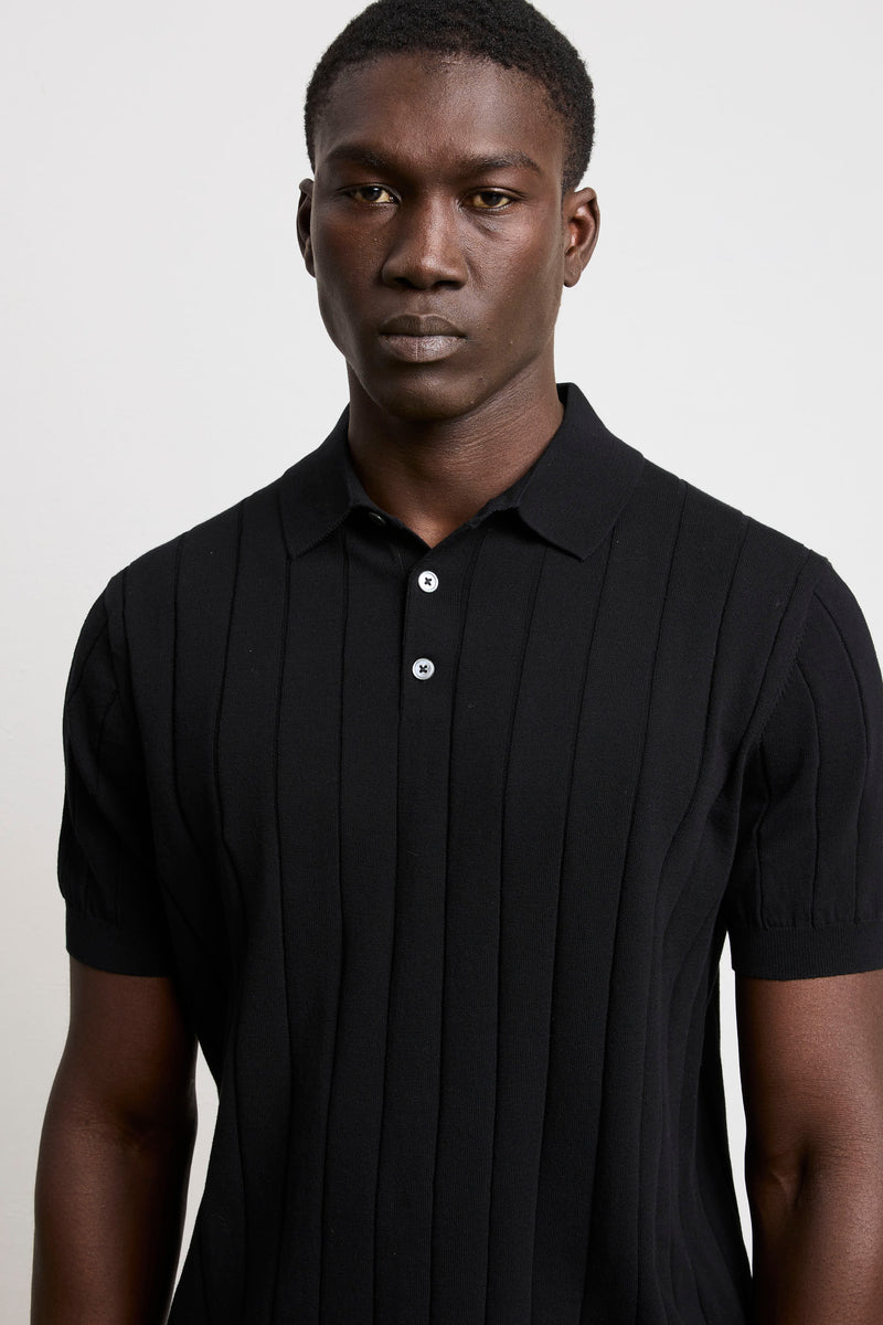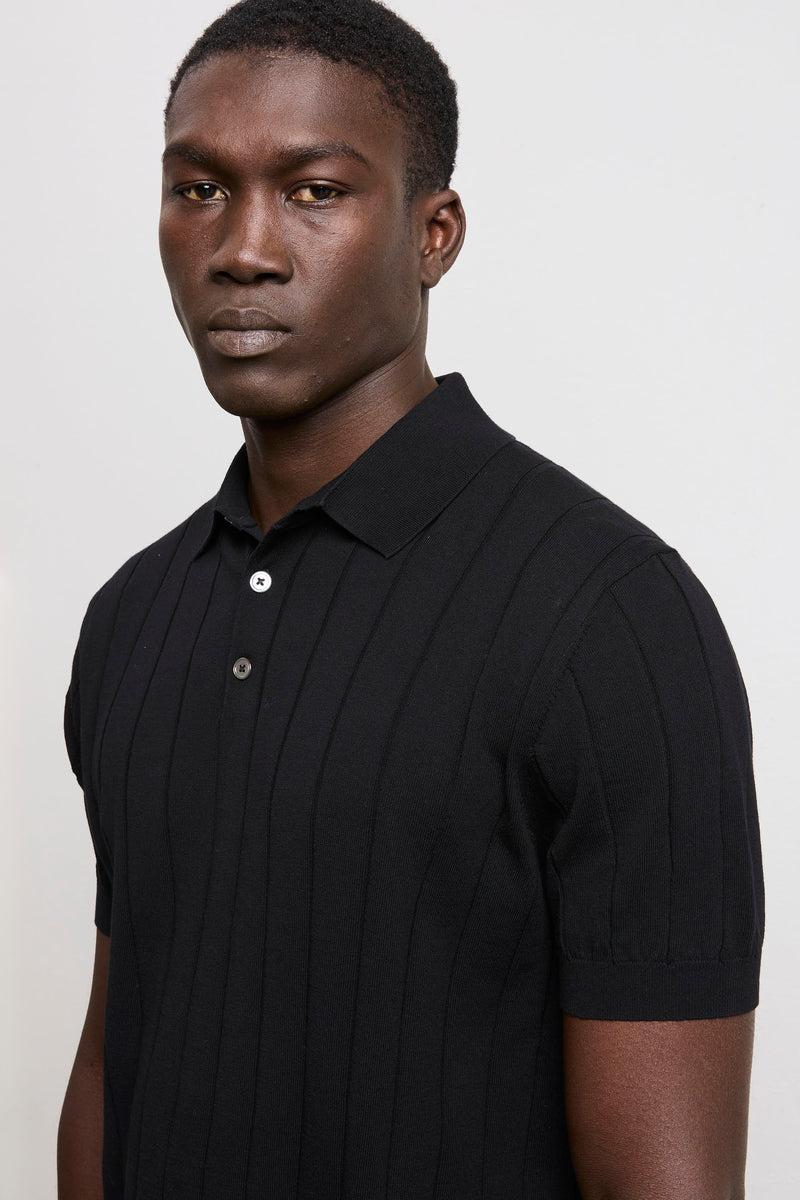 Reworked 3451 Black Short Sleeve Wide Ribbed Jersey Polo Shirt