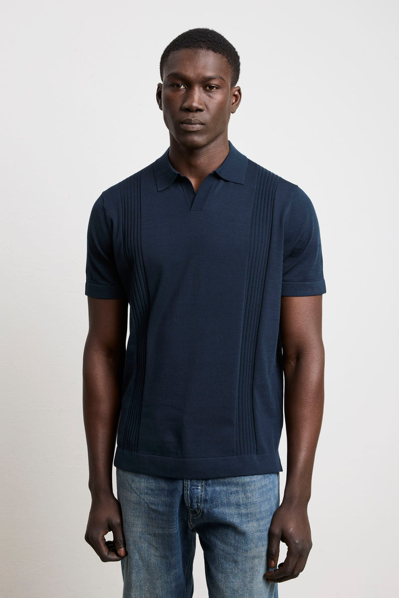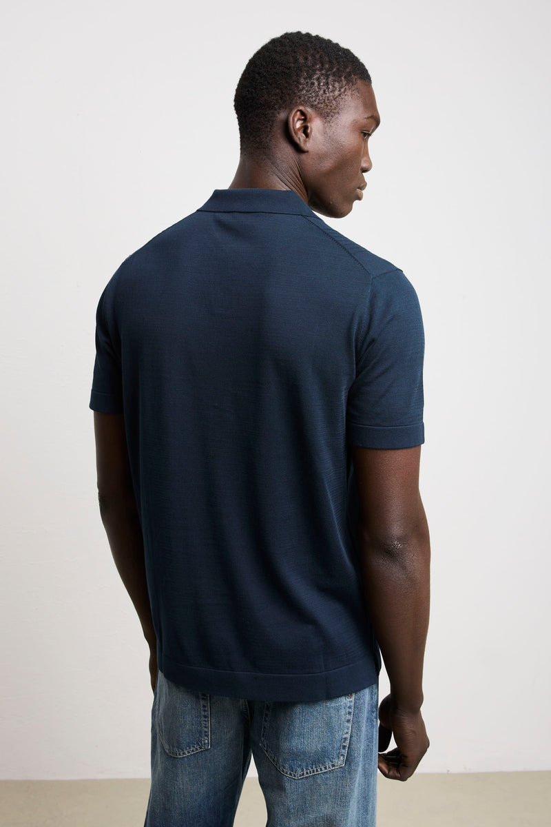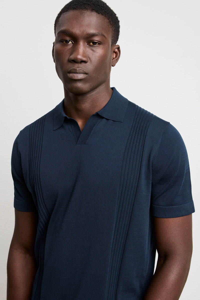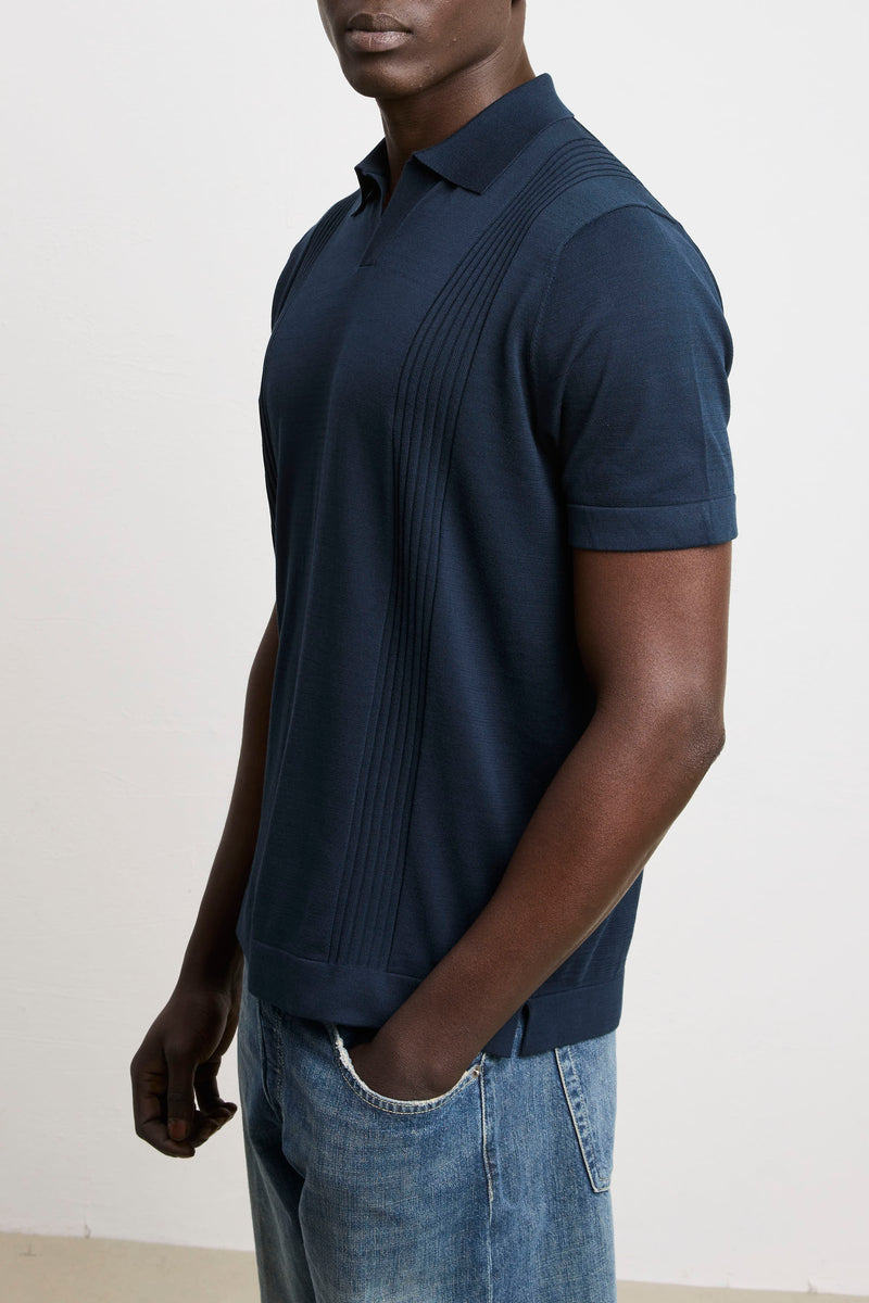 Reworked 3462 Short-sleeved ribbed knit polo shirt in blue