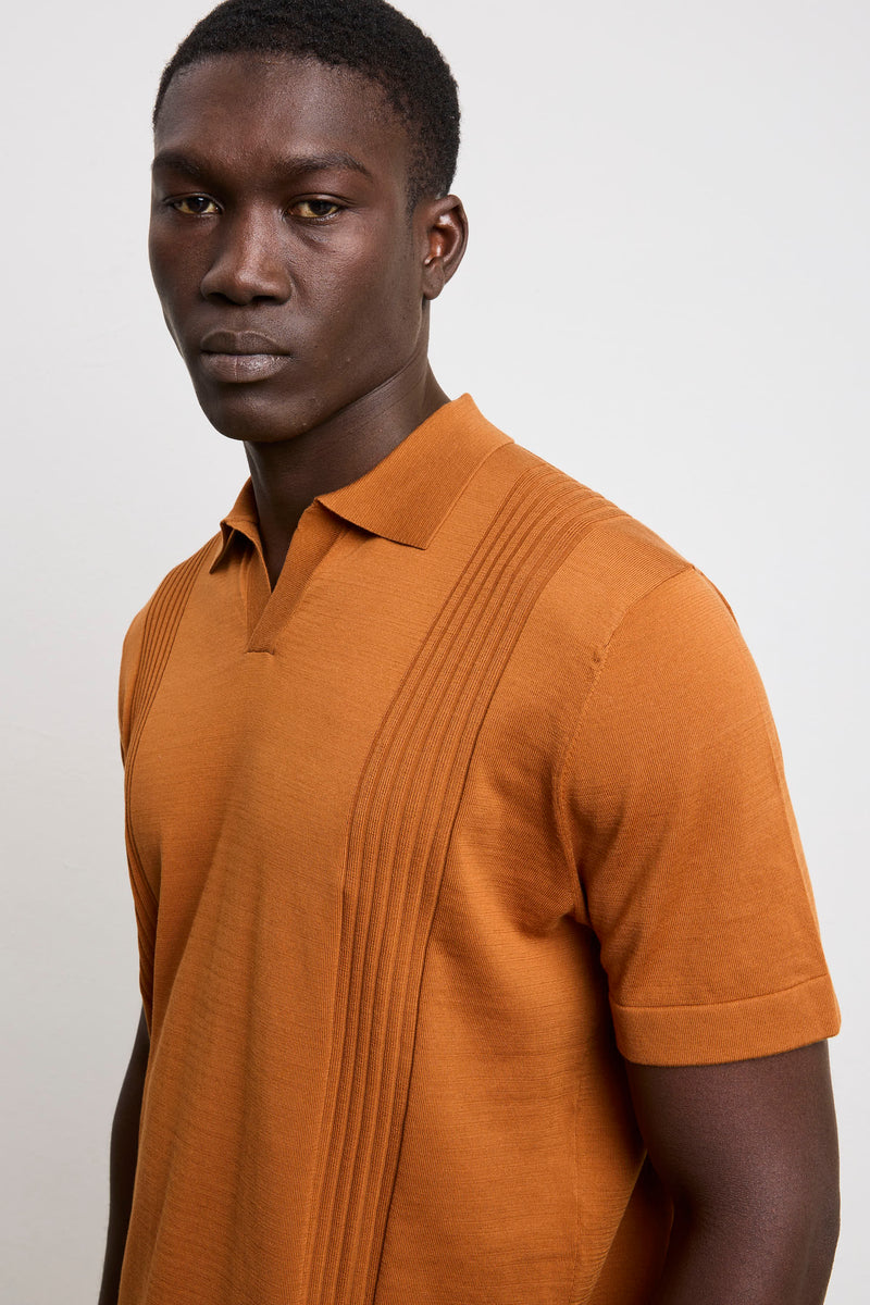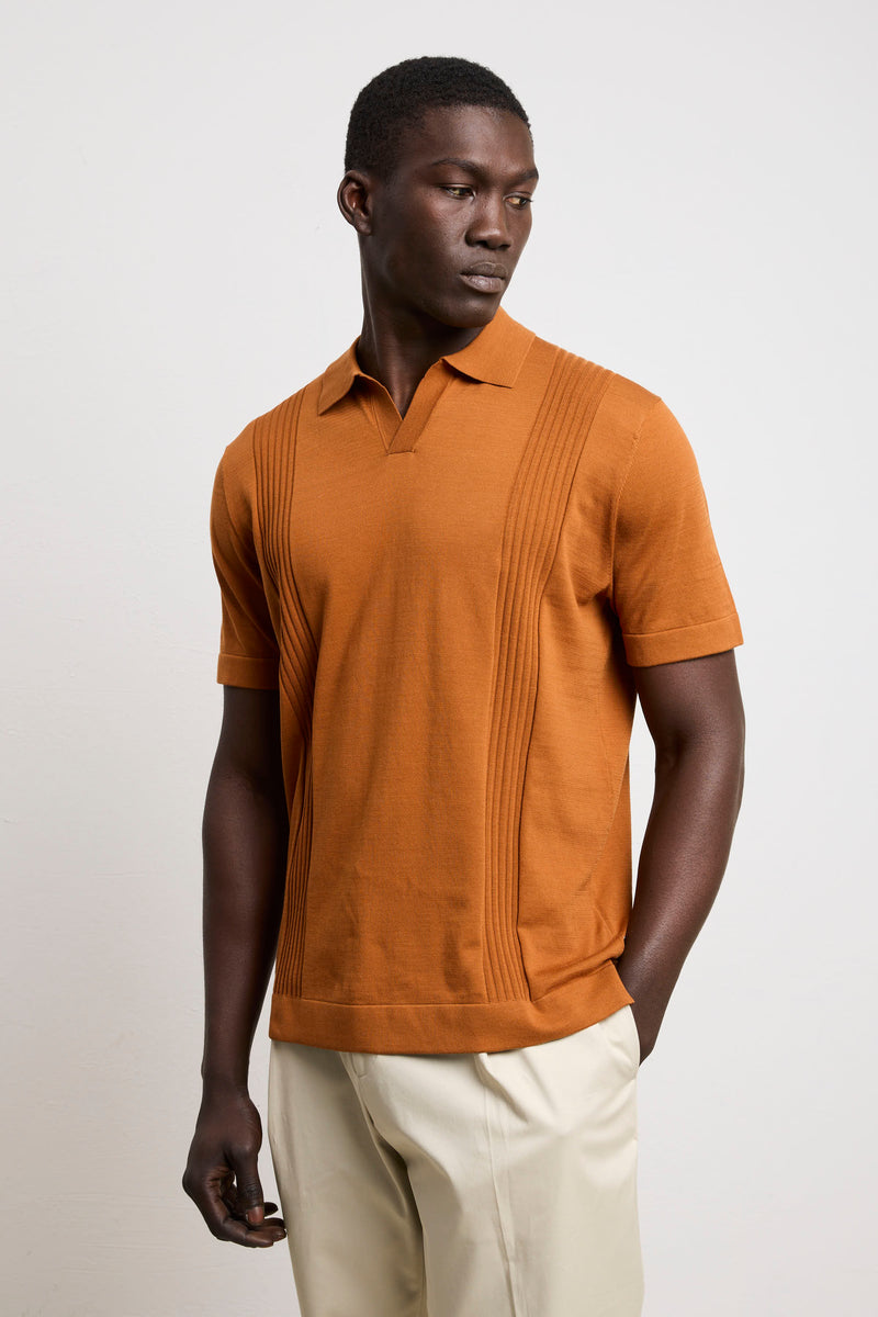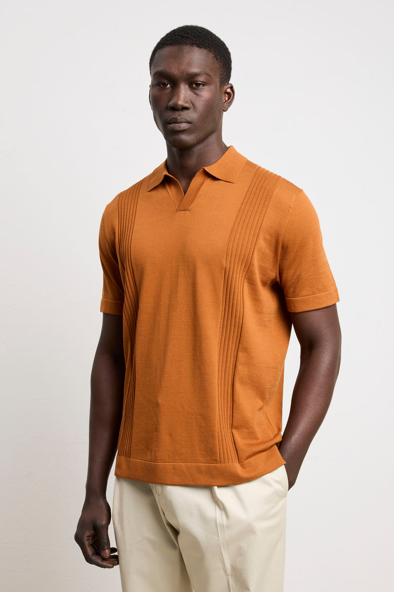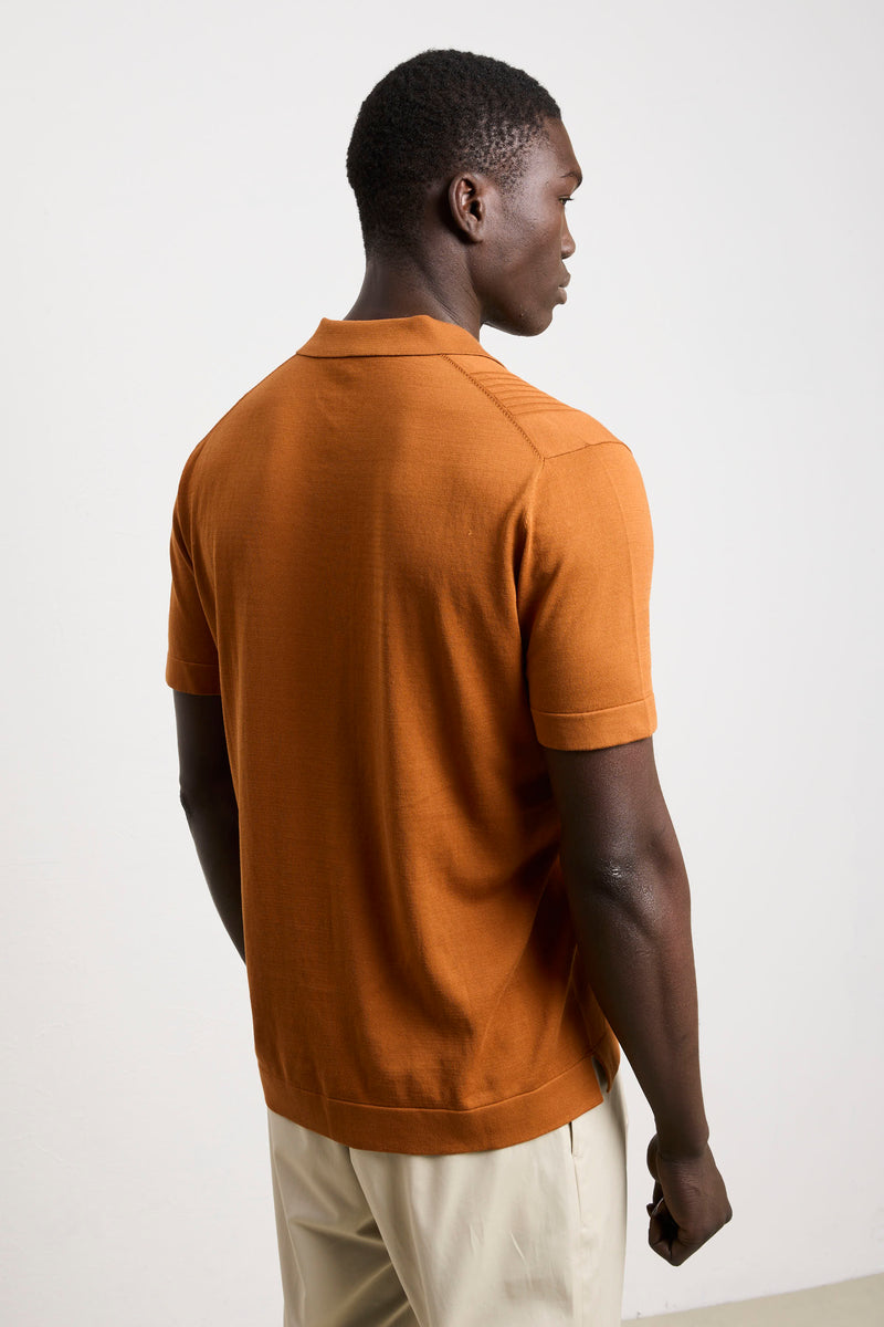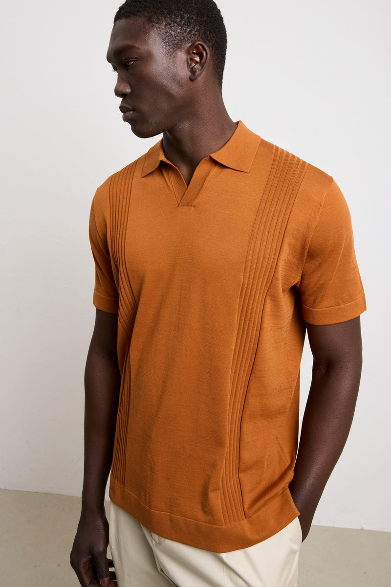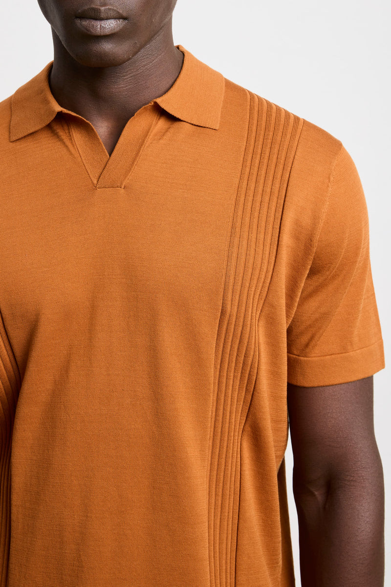Reworked 3463 Tobacco Ribbed Short-Sleeved Jersey Polo Shirt