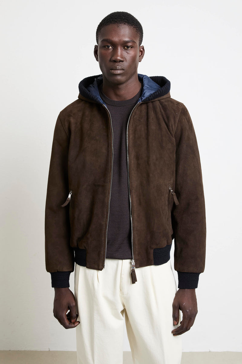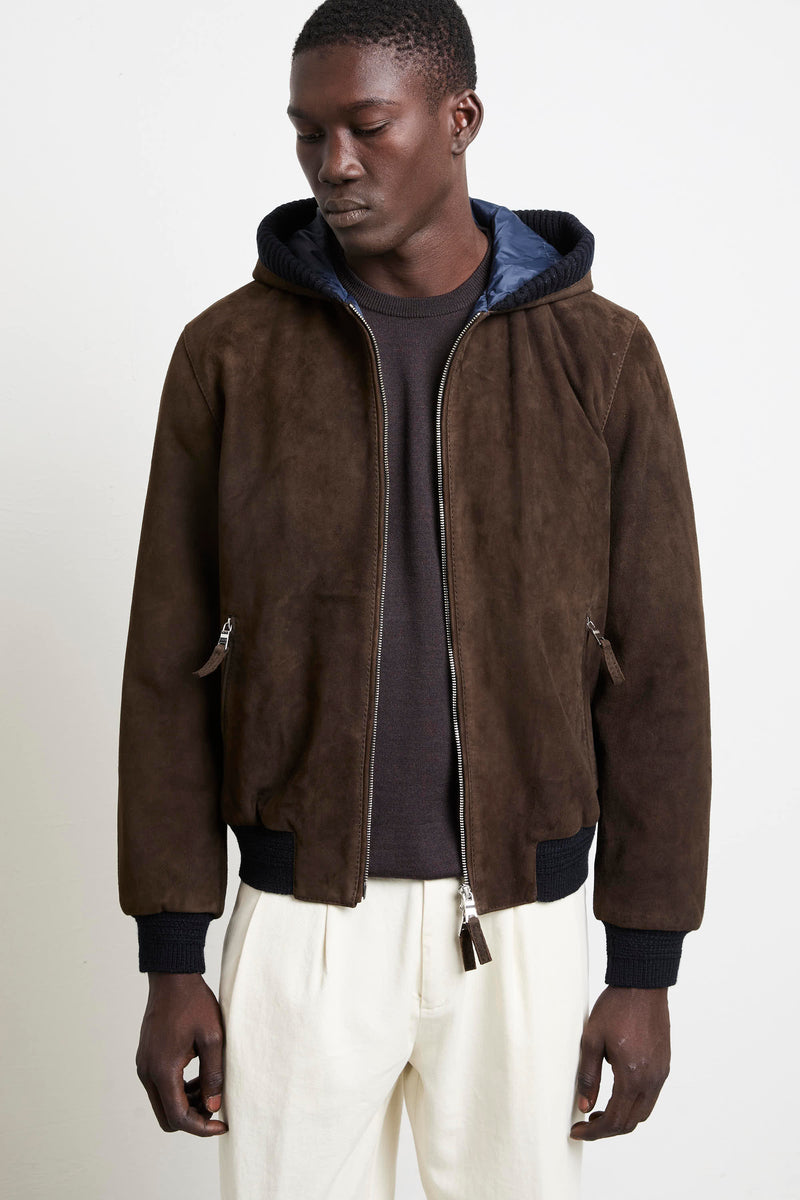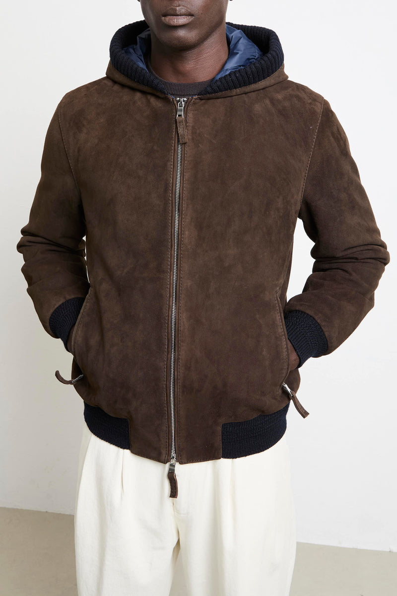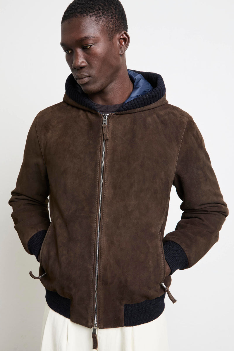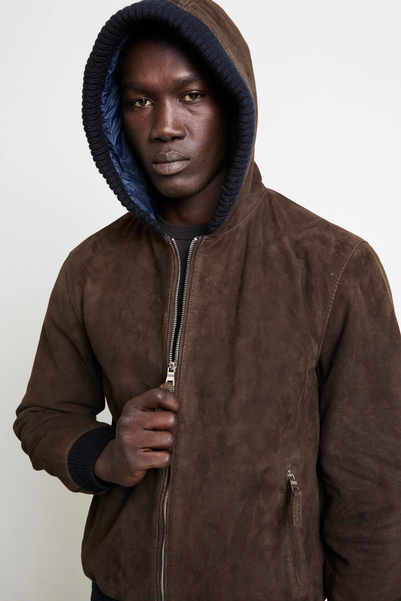 The Jackie Leathers 2677 Giubbotto Jonathan marrone camoscio con cappuccio
