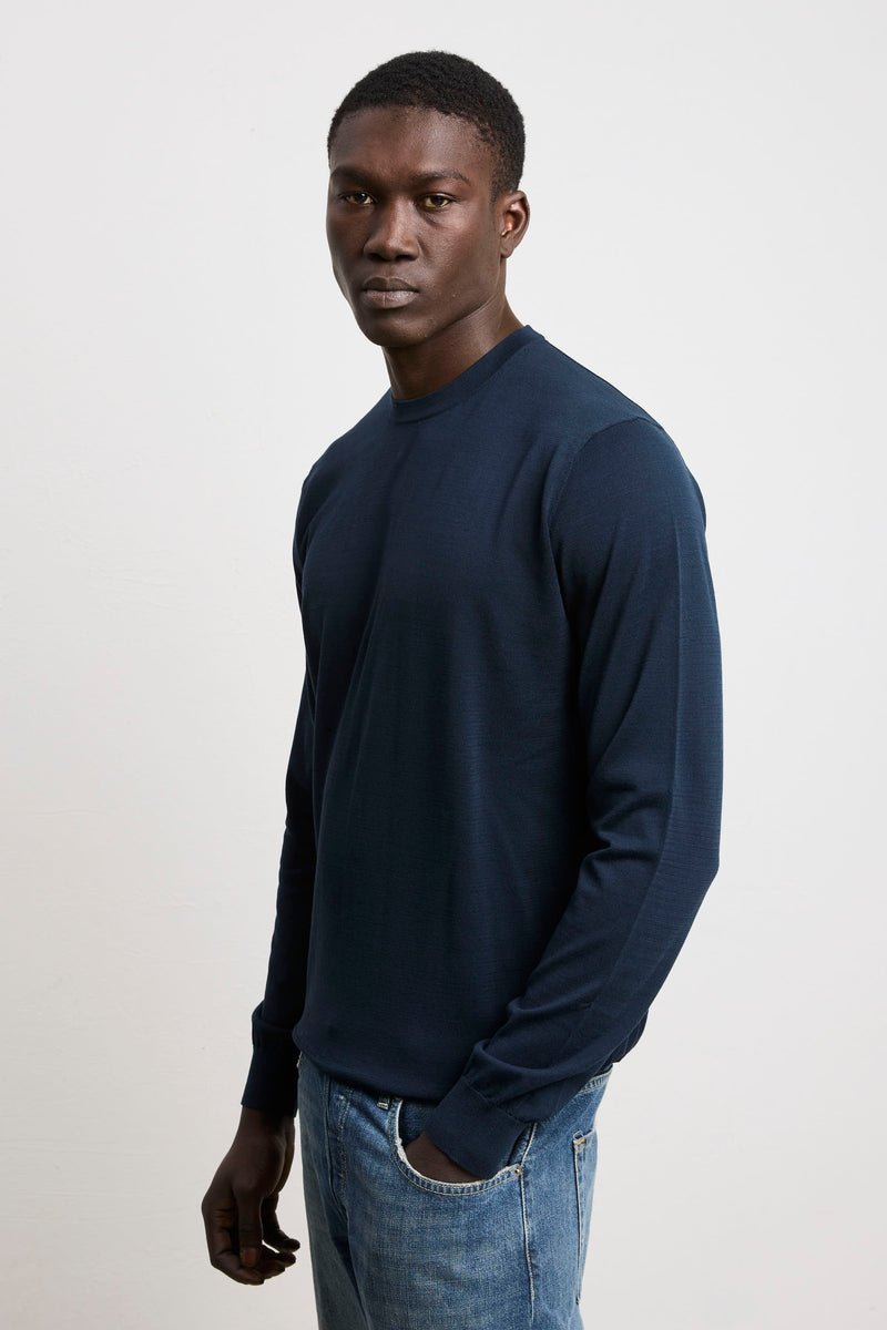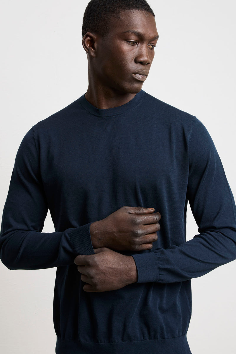 Kangra 3201 Maglia manica lunga in seta e cotone blu