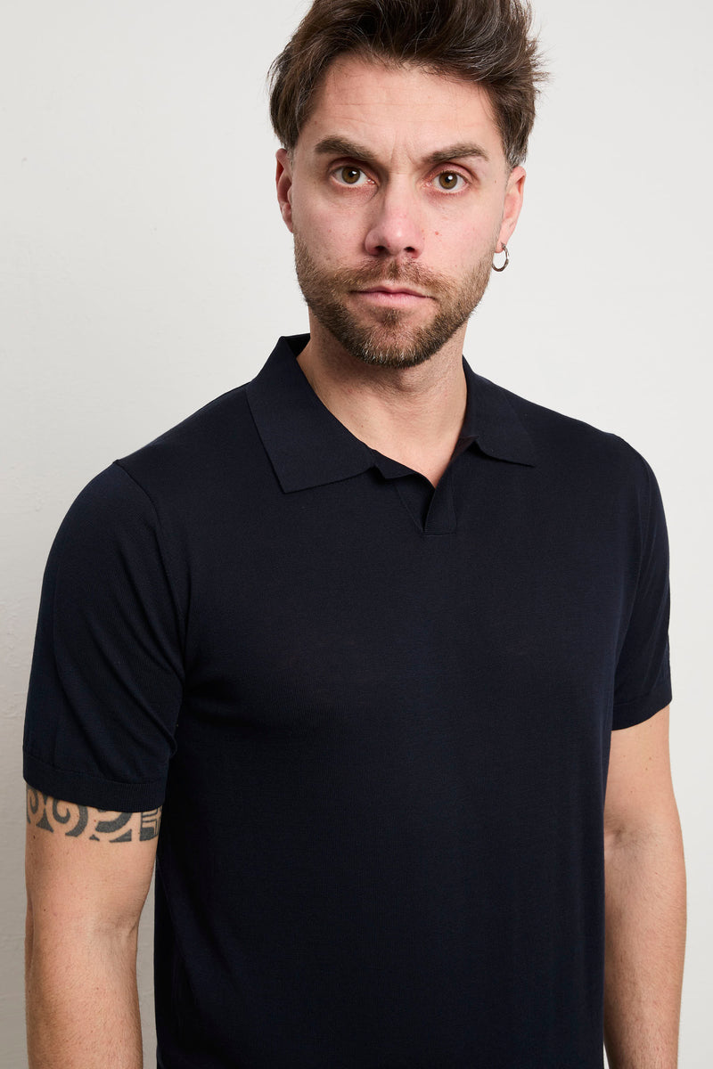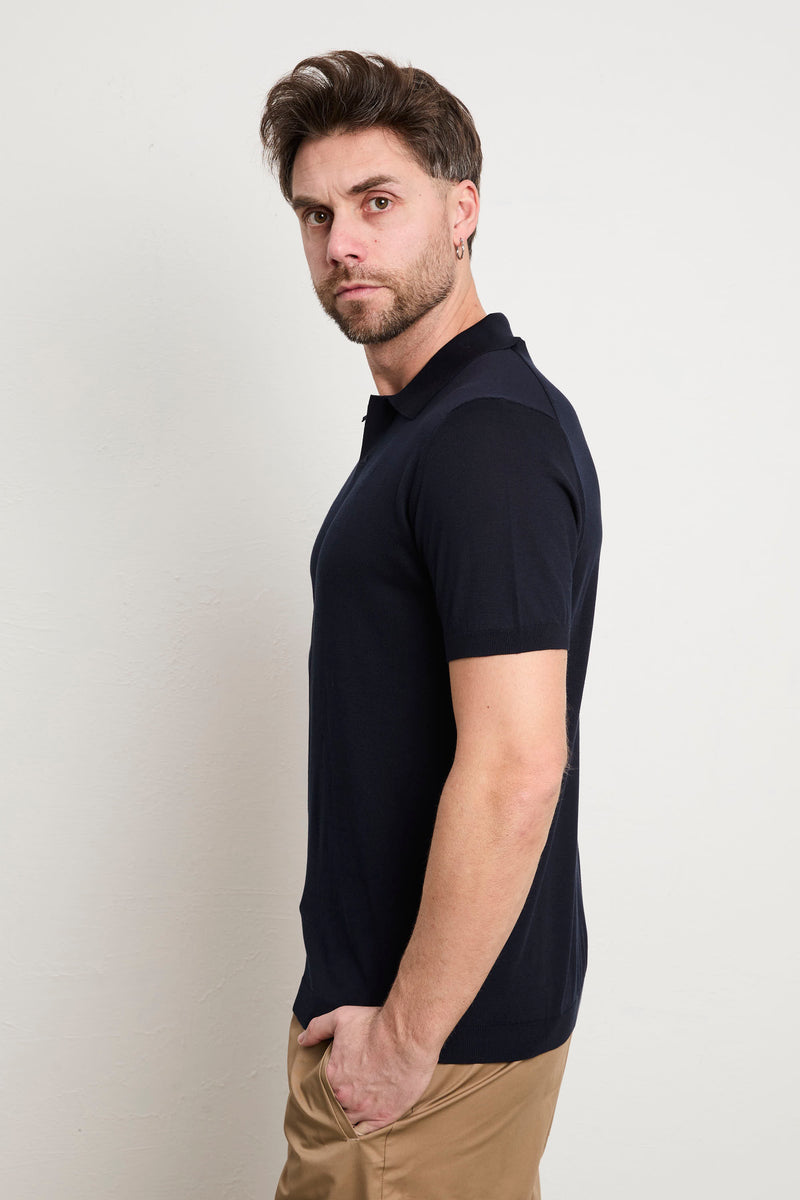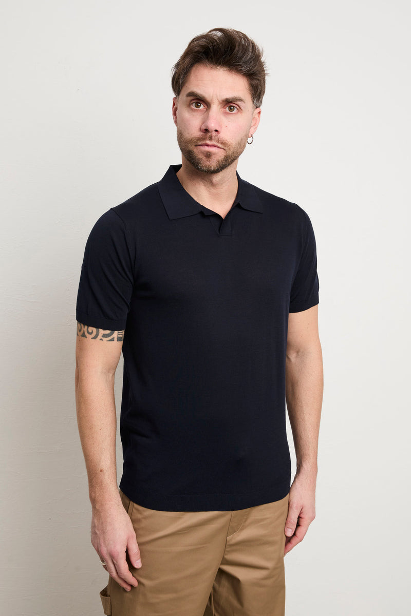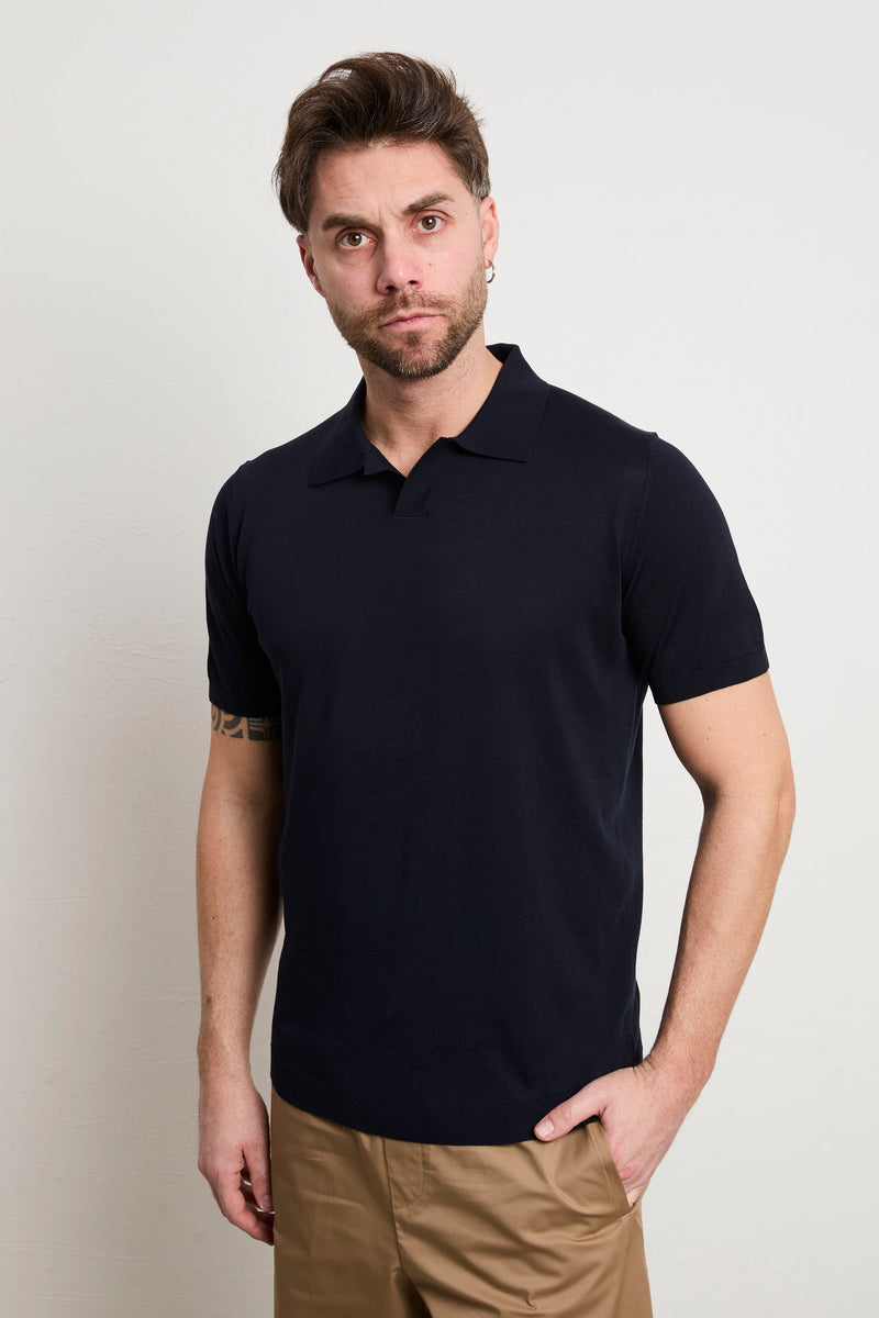 Kangra 3206 Polo in maglina seta e cotone manica corta blu