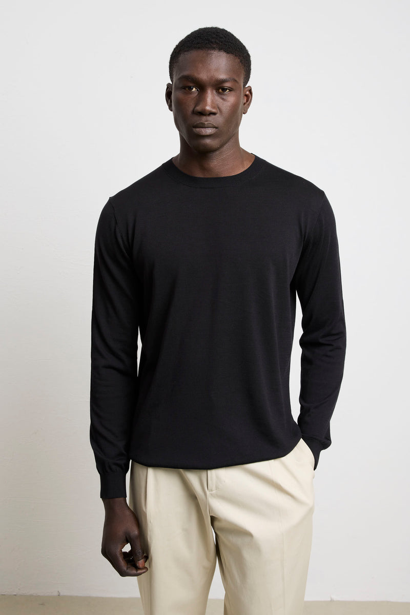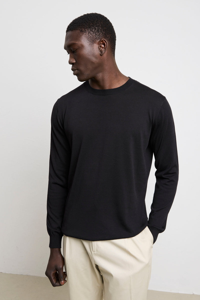 Kangra 3217 Maglia manica lunga in seta e cotone nero